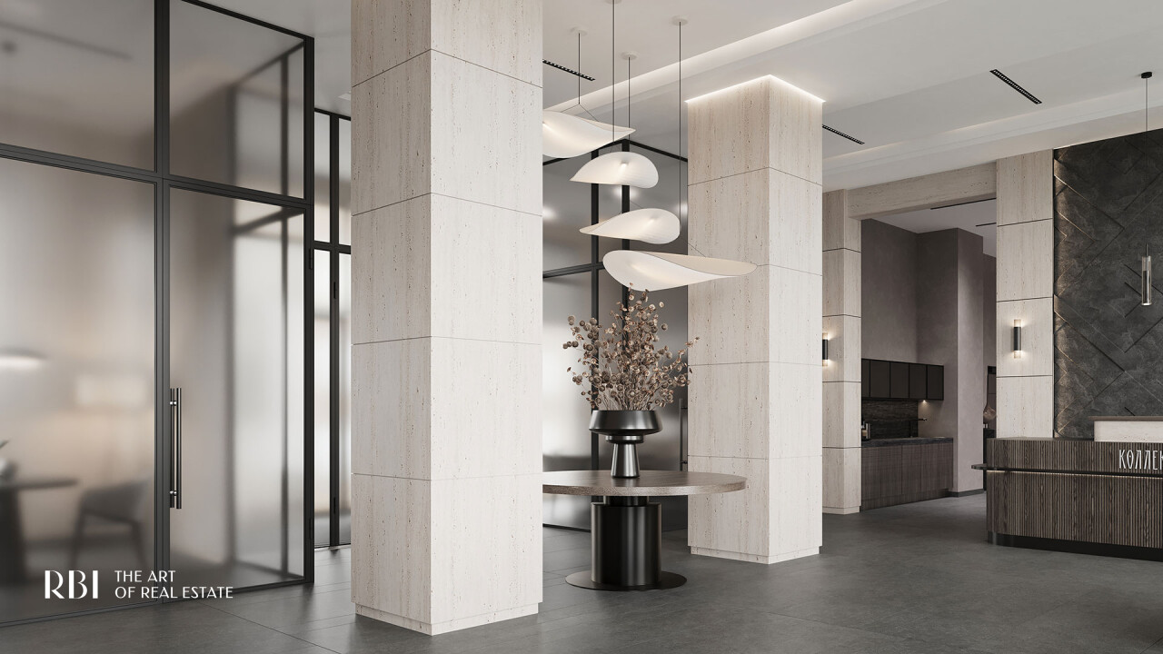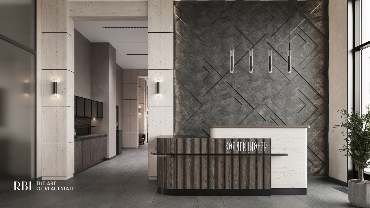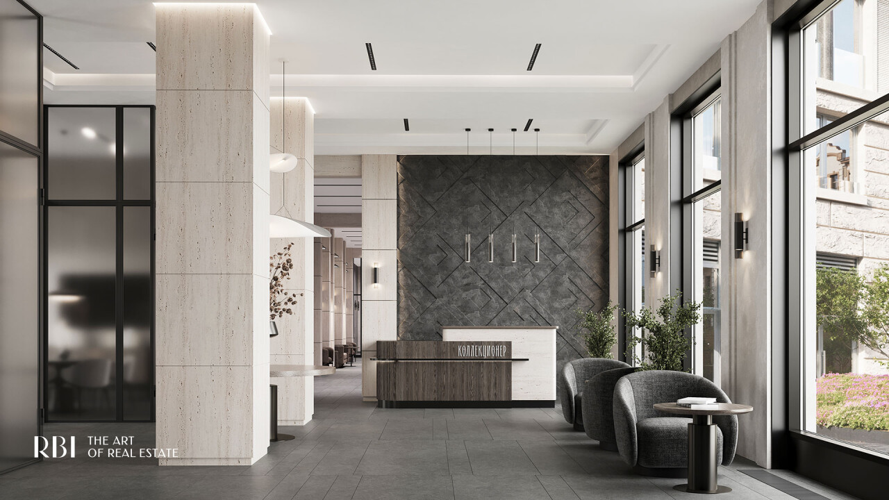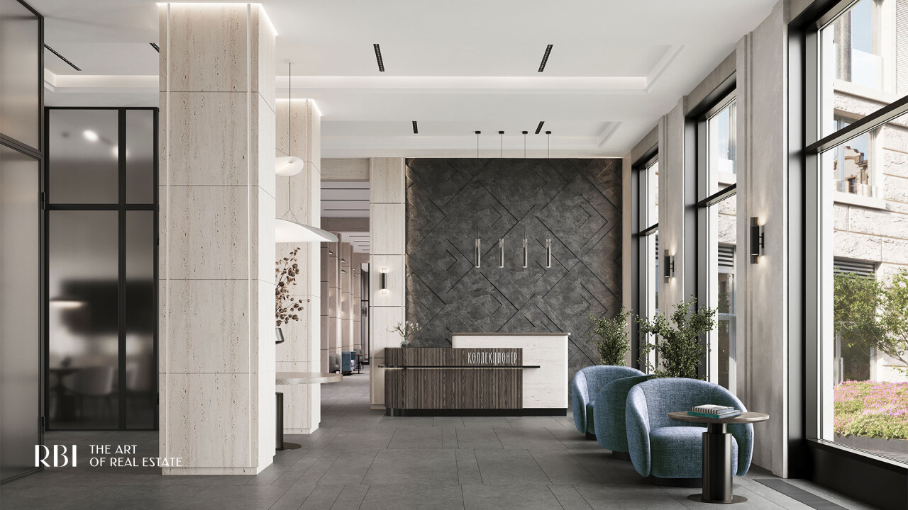 Коллекция впечатлений о доме «Коллекционер» начинается с архитектуры и продолжается в лобби: благородные оттенки, натуральные материалы, 4-метровые потолки и светлая анфилада с пинакотекой и панорамными окнами. А на стойке Reception, можно забронировать одну из двух комфортабельных переговорных комнат для важных переговоров или занятий.